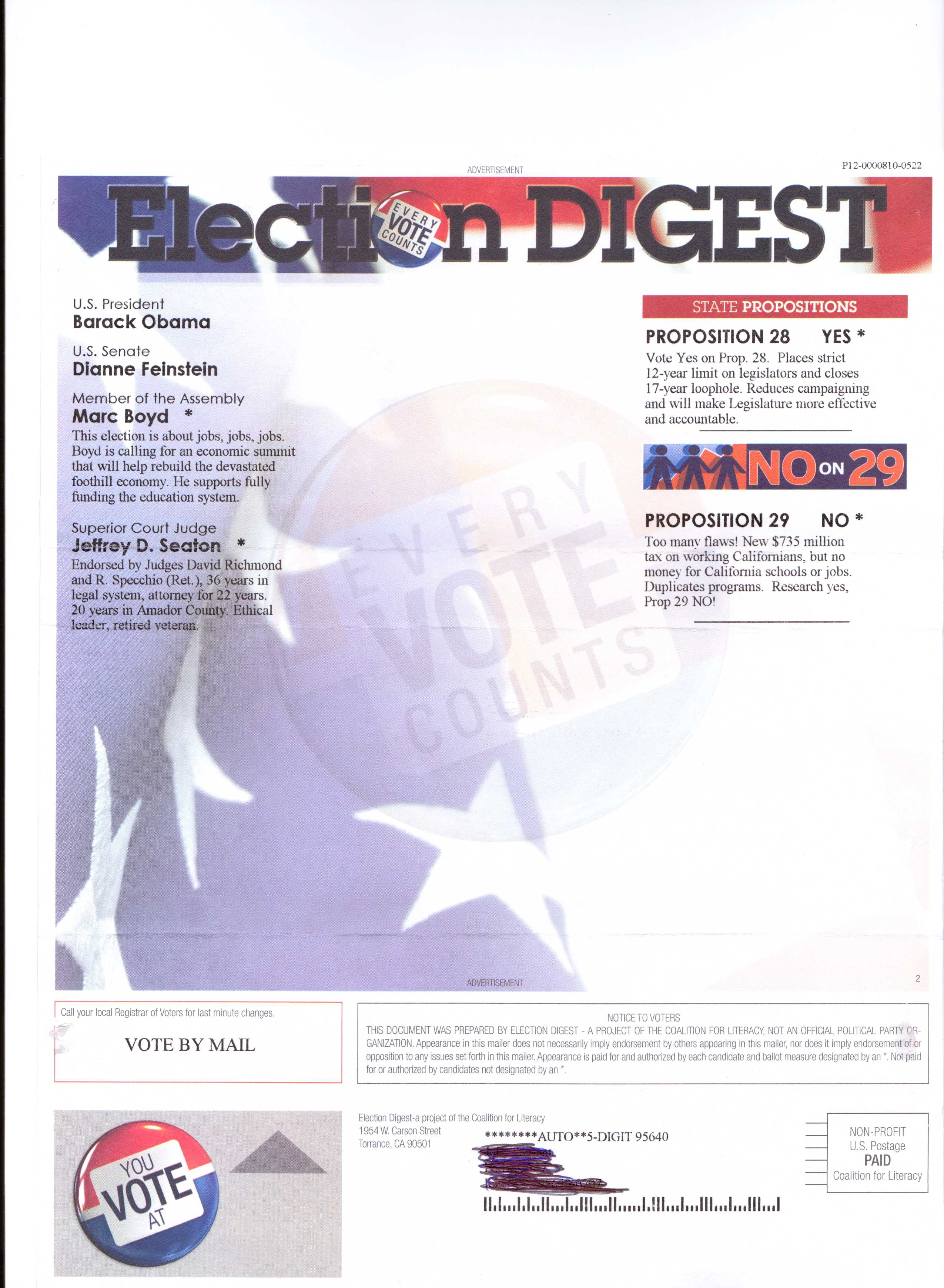 One of the things Lloyd Levine does do is run political mail – this is where Jeff Seaton comes in.