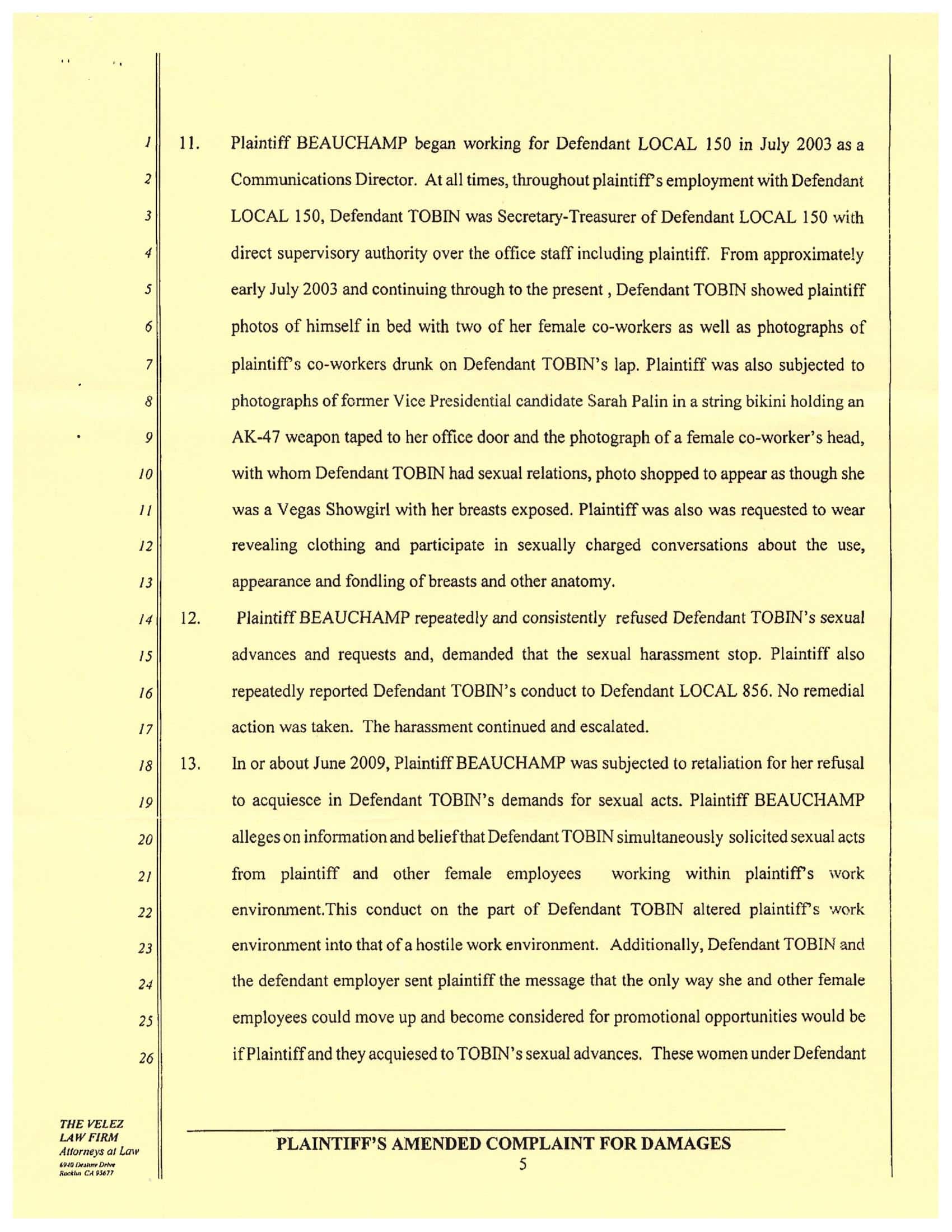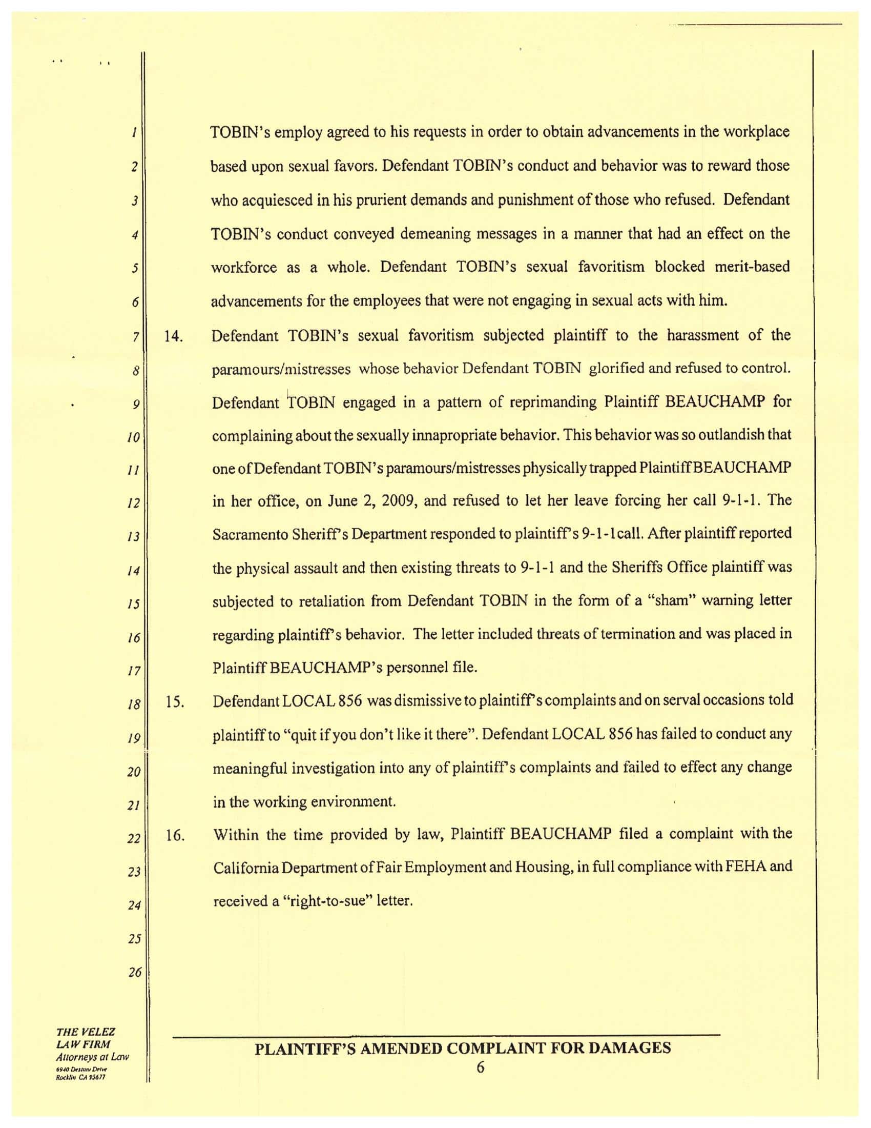 In the second – Jim Tobin was convicted in civil court of sexual harassment a second time but nothing was paid out because the Jury referenced that the statute of limitations had passed. (Page 5 of Complaint and Page 6 of Complaint)