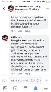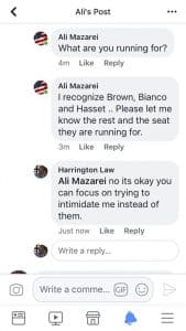 Many of you will recall the poorly worded legal demand letter Mazarei sent me, that included my home address. You will recall that several within Mazarei’s echo chamber shared the letter, including a couple of local elected officials in an attempt to gain political advantage for Mazarei.