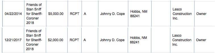 Now, let’s add Johnny Cope to the list. He went in for $7,000 to the top law enforcement official in Riverside County. Cope is a major democrat donor. He is a past chairman of the Lea County New Mexico Democrat Party.