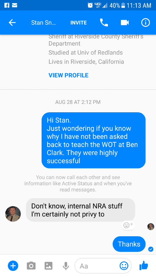 Despite Payne and others in the NRA manufacturing endorsements for Stan Sniff. Sheriff Sniff is still declining CCW applications for absurd and arbitrary reasons. This is why Cal Guns and 4 other groups have sued the Corrupt Sheriff over his CCW Issuance practices.