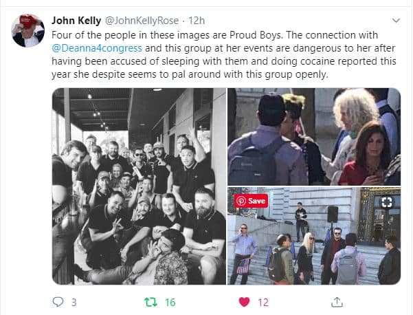 We had posted about Deanna Lorraine who talks about God and Values when people are paying attention, yet was partying like a rock star in Florida the night before an event. When she was in Florida we identified that guy she was partying with as a Proud Boy.