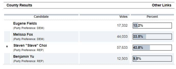 AD-34 Vincent Fong: 72% of the vote. Hat Tip.