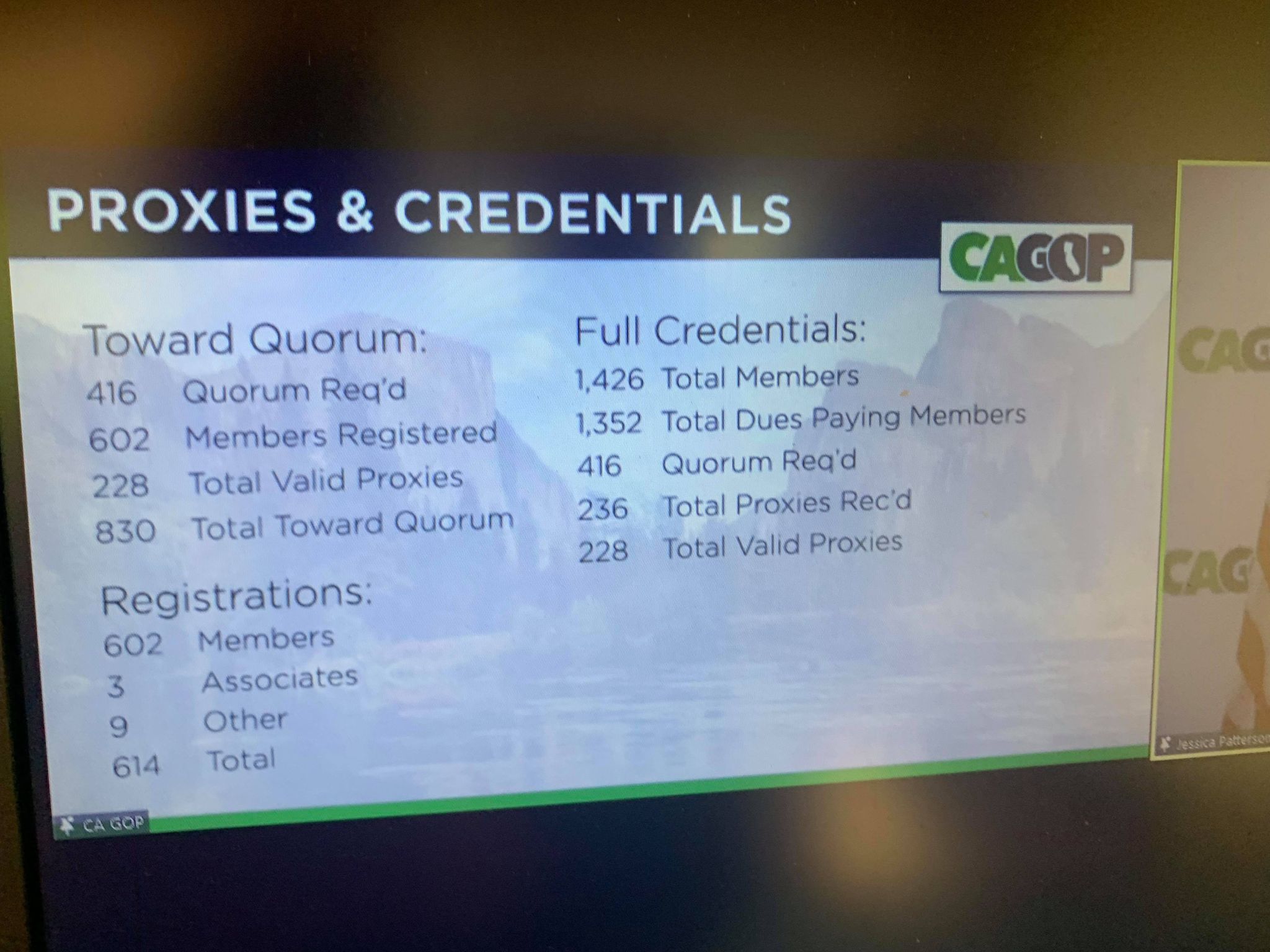Please note 236 Proxies were submitted and several were contested by the consultant-dominated Proxies and Credentials Committee. I am aware of at least 10 legitimate proxies they tried to stuff. Is anyone surprised as the members include staffers, Faulconer Consultants and the Chairs of Two Counties that violated election law? IT appears they were only able to justify tossing 8 of them.