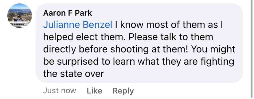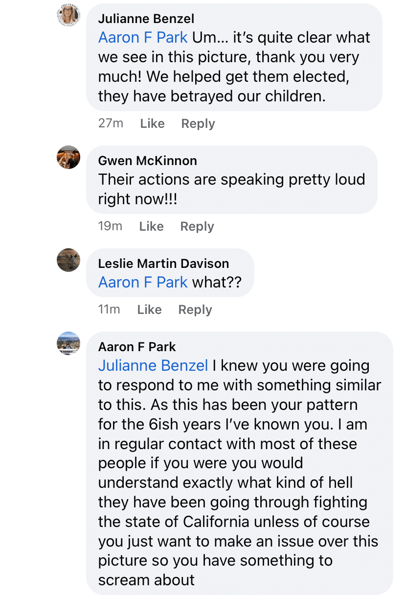 However, sometimes those on the right can’t help themselves. Enter one-time Presidential Candidate Julianne Benzel who also ran against Congressman Tom McClintock at one point as well.