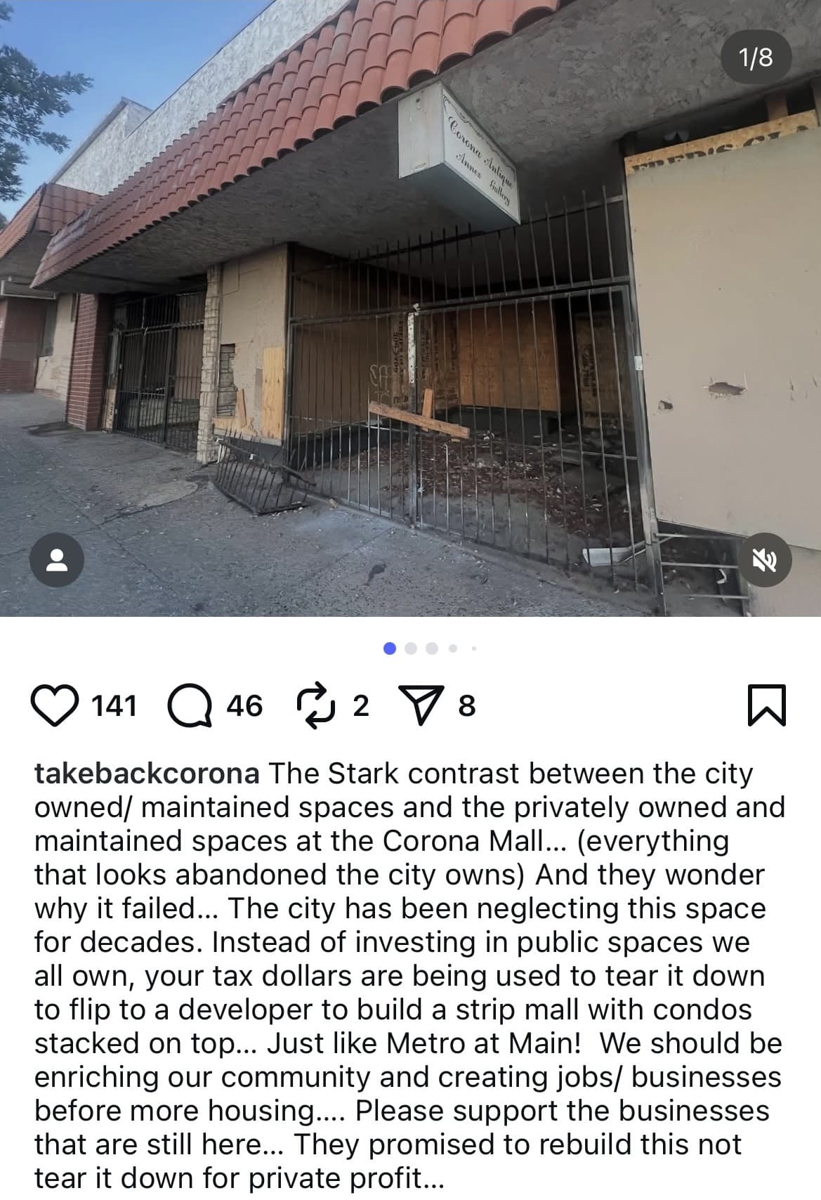 If you think the City Council is not in on the deliberate blighting of downtown, witness the Mayor of Corona calling his own downtown a “S–thole”! Gheez, Mr. Mayor, you caused it. The lack of self-awareness of all these people is clinical.