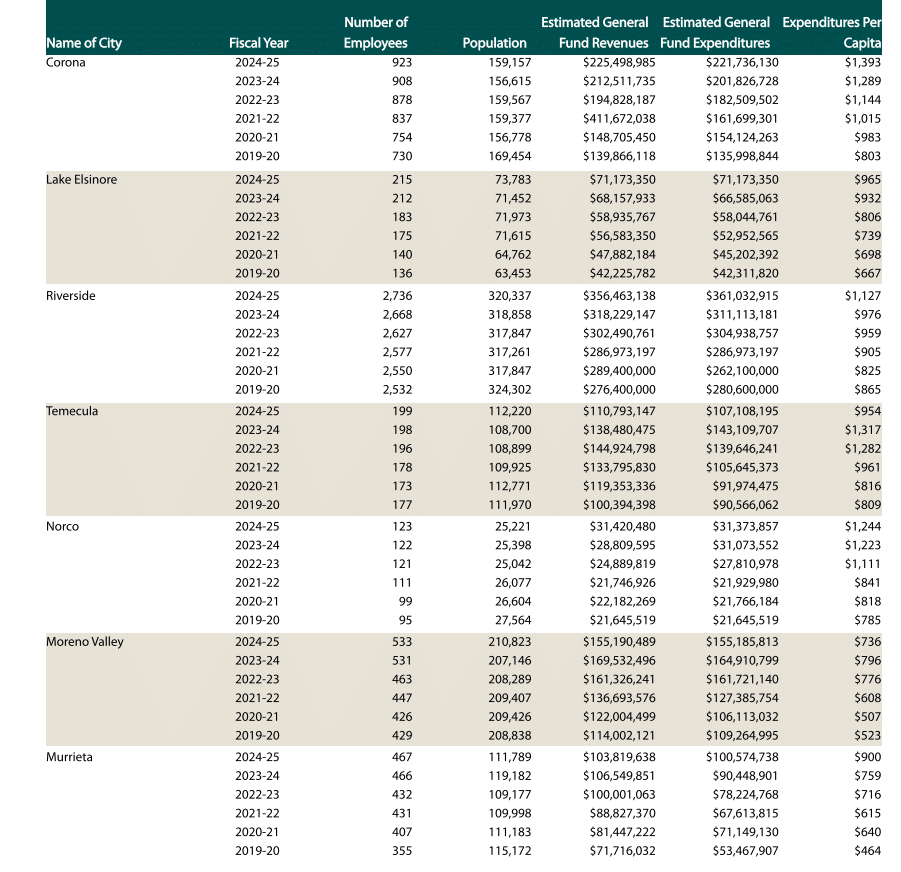 Let this sink in for a second. Corona is #1 in General Fund Revenue spent per capita among this set of incorporated cities in Riverside County. Corona is also in serious debt, which we will outline soon as well. Corona is a city of 160,000 people. It's City...