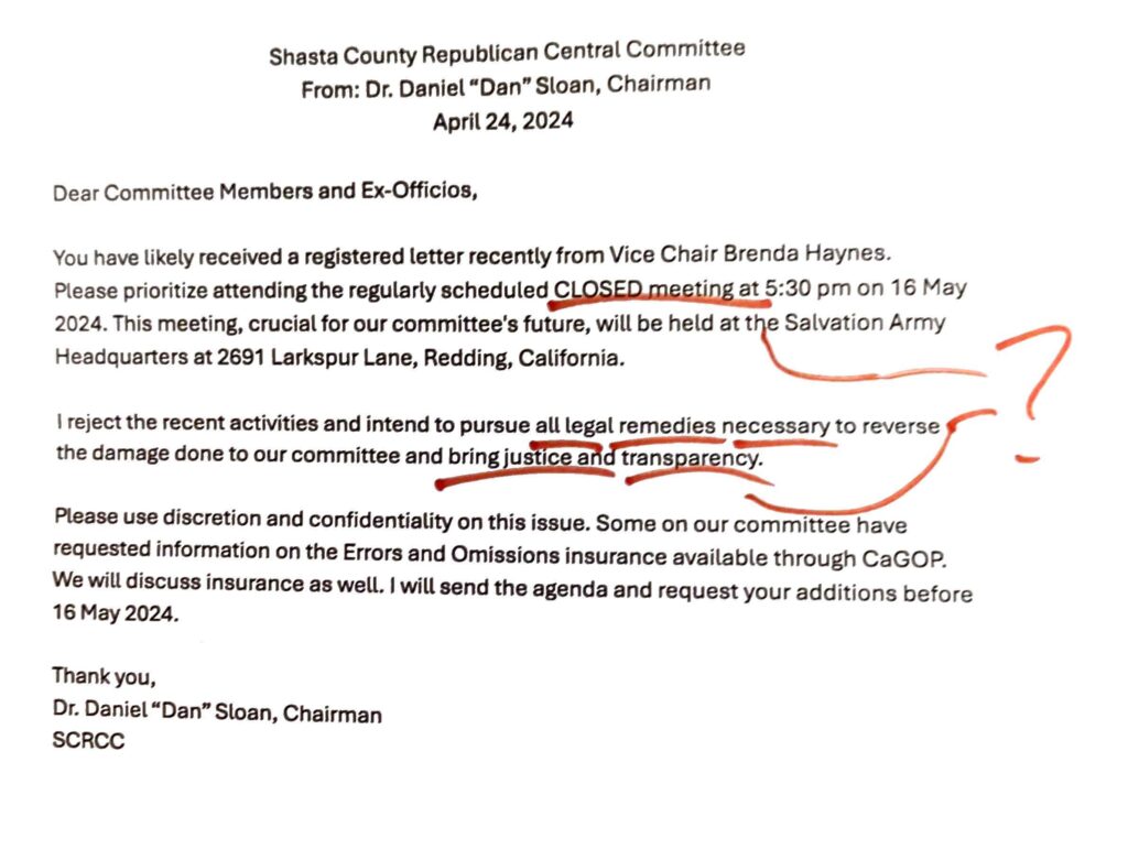Shasta GOP Update: Dan Sloan’s Ugly Side Coming Out After Losing 15-3 Vote – Still Claiming to be Chair, Threatening to Sue (who?)